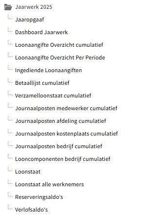 - U ziet vervolgens alle verwerkte salarisruns van 2025 met onderaan het jaarwerk.